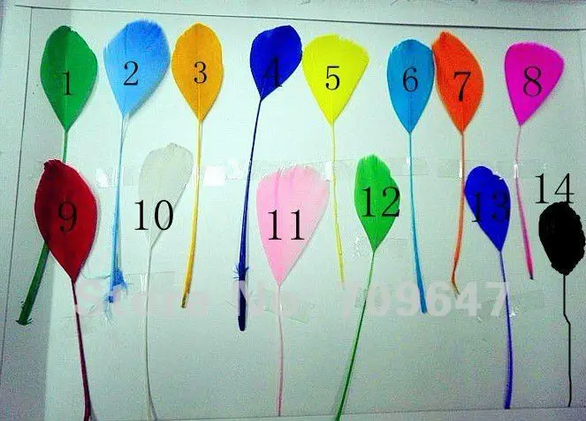 Шлейфы! 200 шт./лот! 10-18 см #14 видов цветов, в полоску, с гусиными сатинетами, с перьями, вечерние, маски, шапки, аксессуары, окрашенные, с одиночными перьями
