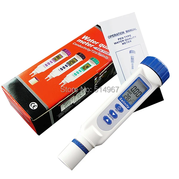Brand NameazModel Number837-1OriginMainland ChinaCertificationCEDisplay TypeDIGITALWith Backlight Or NotYESMeasurement unit100000015Each pack1Waterproof RatingIP65Measuring RangeSalinity: 0.00~10.0 ppt (NaCL) and 10.1~70.0ppt (NaCL)Temperature Compensation:0~50degreeCAccuracySalinity: 1% Full Scale +/- 1 digit or 2% Full Scale +/- 1 digitResolutionSalinity: 0.01ppt or 0.1ppt Temperature: 0.1degree C/degree FTDS FactorBuilt-in NaCL conductivity to TDS conversion factorNormalization TemperatureFixed at 25degree COperating Temperature0~50degree CPower Supply4 x 1.5V button batteries (last up to 80hrs continuous work)
