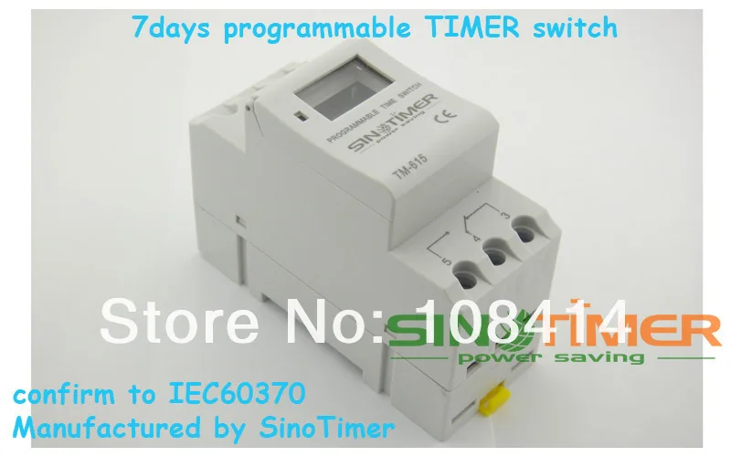 Sinotimer Бренд TM615 (h) DIN 7 дней часов Программируемый переключатель таймера может Автоматически включения и выключения Различных видов электрического оборудования в заданное время . Он широко используется в 7 дней программируемый контроль Фонарь, Неоновый свет (Знак), Лампы, Нагреватель воды, Кондиционер, Афиша, Электрическая плита, Booster, Опрыскиватель, -Ботлер, Подогреватель, Сельское хозяйство и вещательного оборудования И др. Цифровой Таймер Переключатель В аккумуляторная батарея, в 1.2 В/40мА, чтобы сохранить программ для failiure. Она имеет свои особенности низкое потребление, Высокая точность CMOS-чип, Решительно анти помех, Простой и легко установить, Подтверждает IEC 60367 и CE сертифицированный.