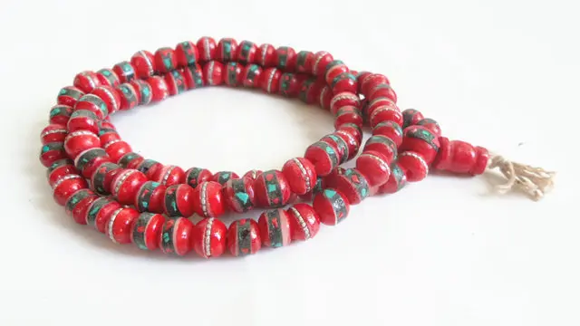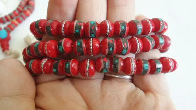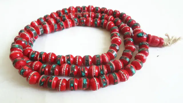 * Бусины из бычьей кости ручной работы, инкрустированный металлический шелк и красочный каменный порошок.