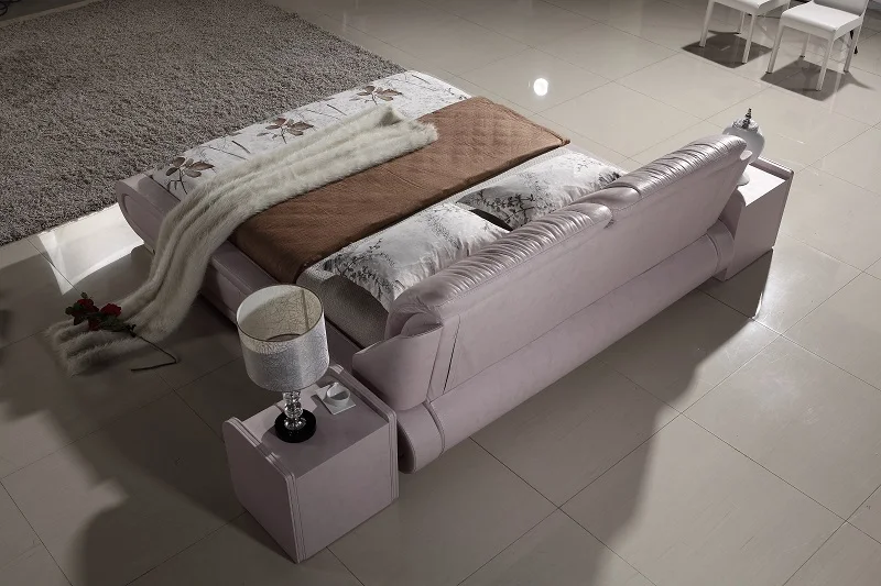 Современная мягкая кровать, комплект для спальни из натуральной кожи, кожаная кровать с верхним покрытием, кровать большого размера, каркас для двуспальной кровати, функциональный диван-кровать, Современные комплекты для спальни